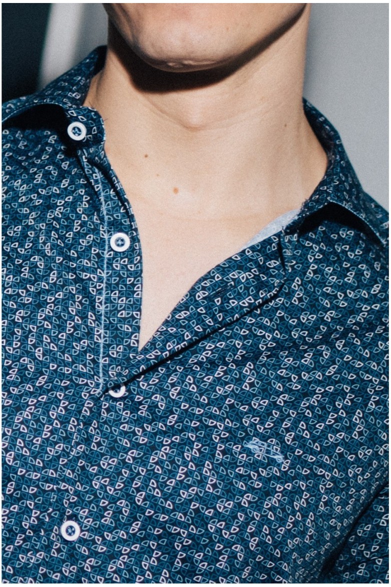 Camisa slim fit de hombre confeccionada en algodón 100%. Con manga larga, cuello italiano y estampado sobre base en color marino, destaca por su diseño moderno y favorecedor. Una prenda de corte entallado que aporta un estilo actual, ideal para looks urbanos y ocasiones semi-formales.
