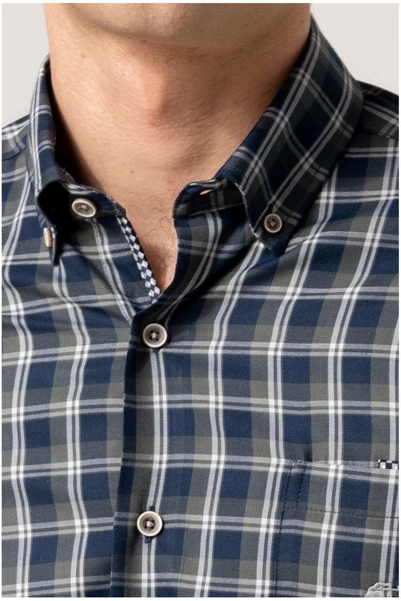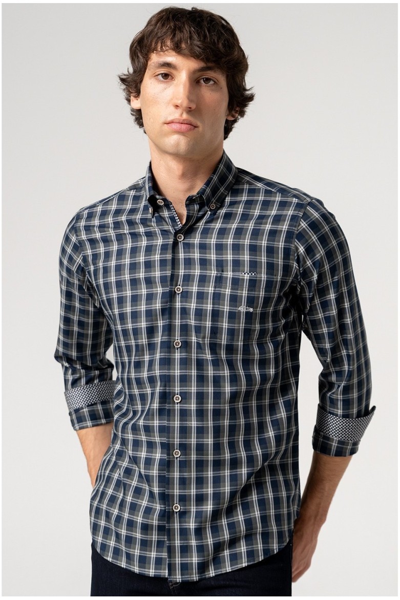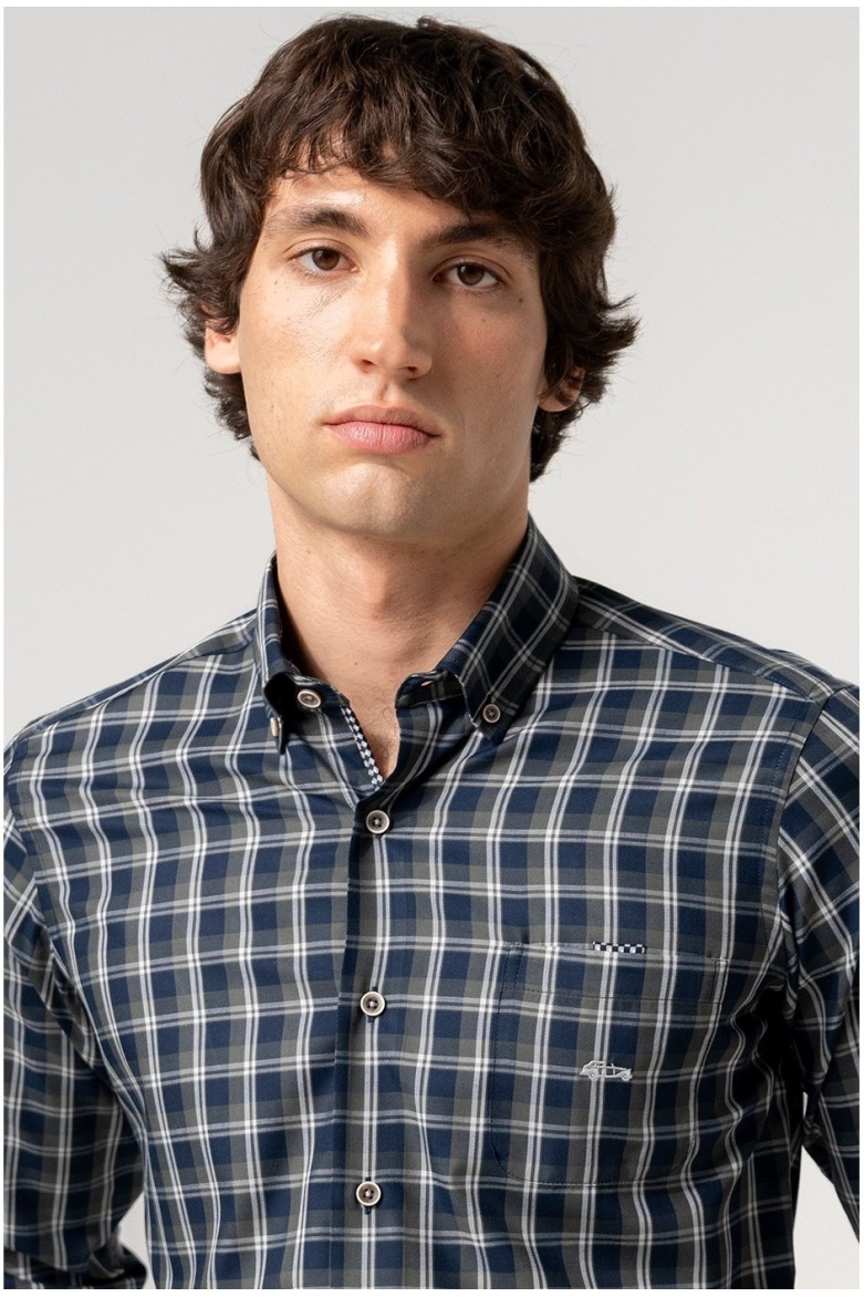 CAMISA CUADROS EN FONDO MARINO CON BOLSILLO