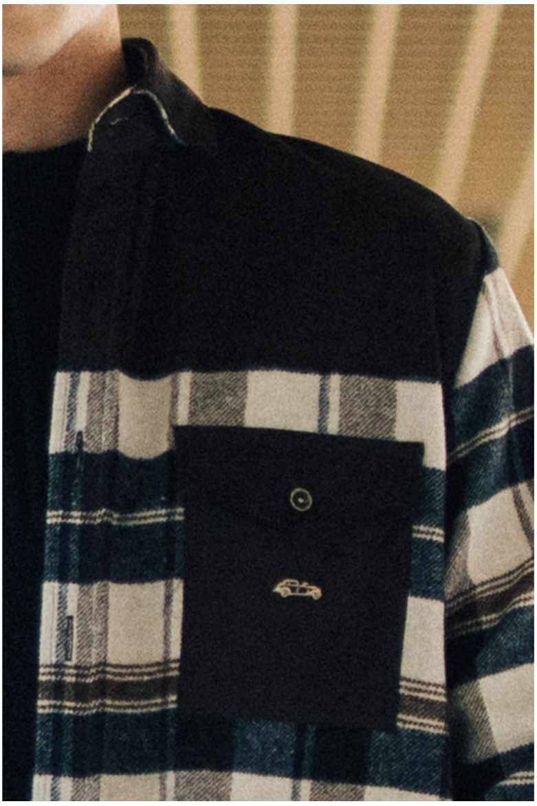 SOBRECAMISA HOMBRE CUADROS GRIS CON BOLSILLOS GRANDES CON SOLAPA