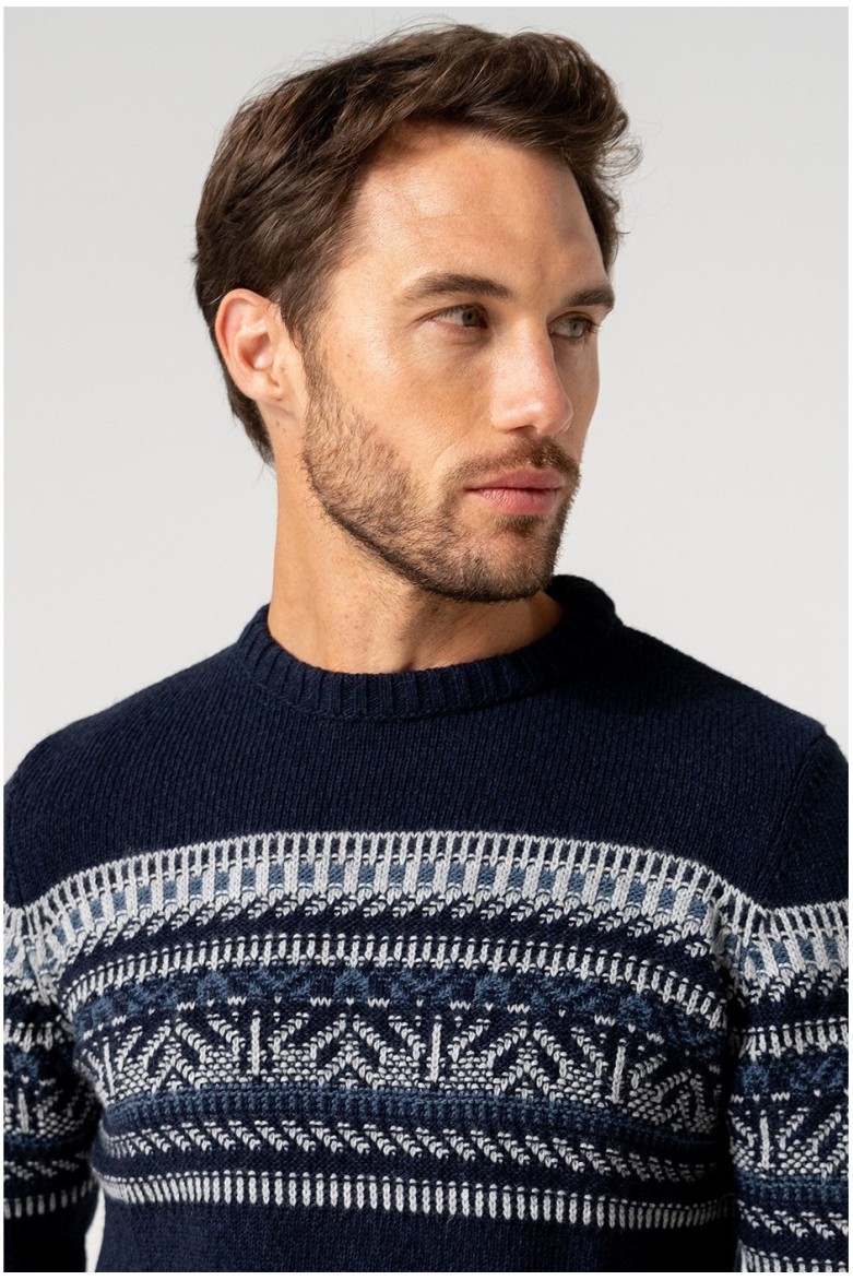 Jersey comfort fit de hombre confeccionado en mezcla de acrílico y algodón que aporta suavidad, transpirabilidad y comodidad. De diseño liso en color marino, con manga larga y cuello redondo, es una prenda básica y versátil ideal para un estilo casual atemporal.