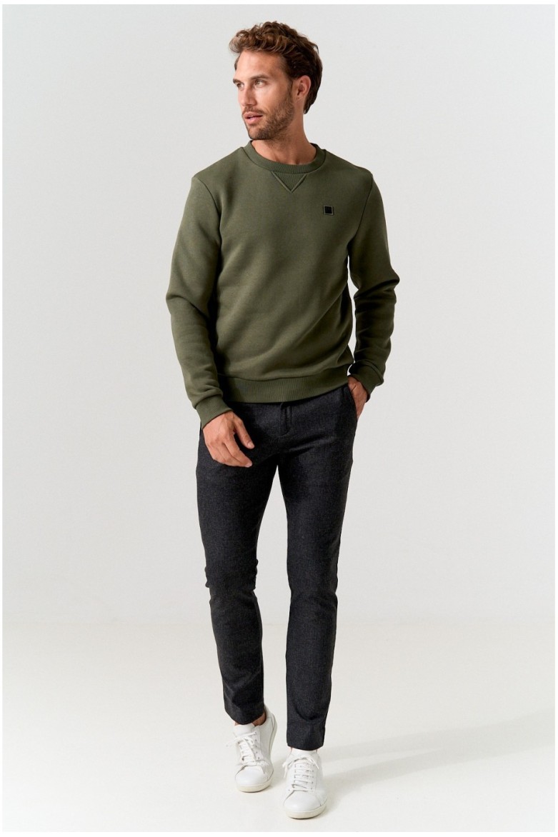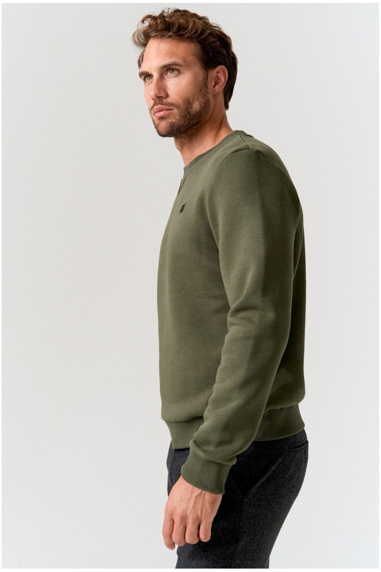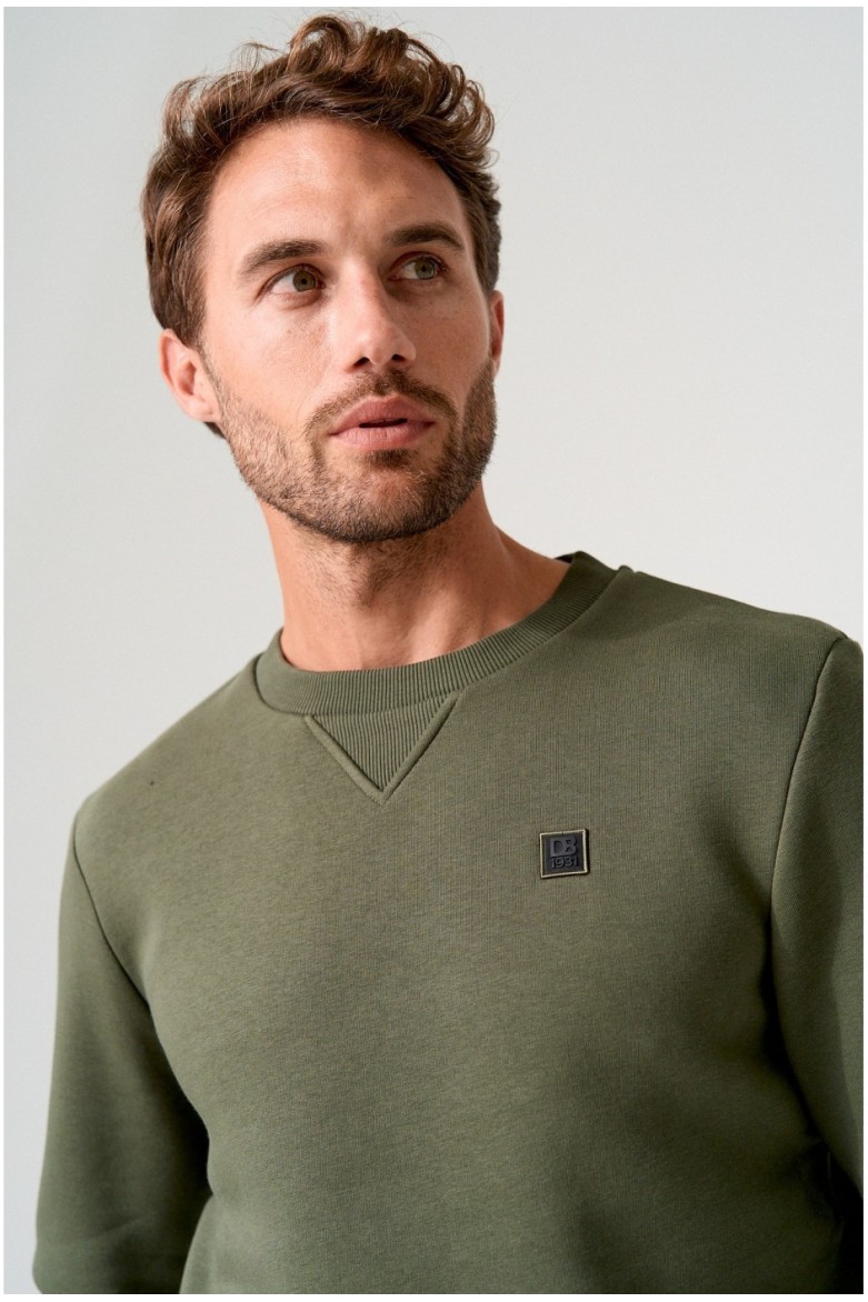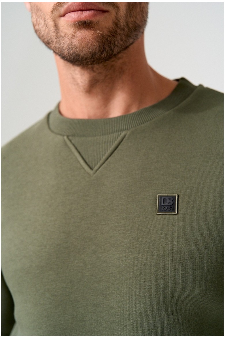 Sudadera color caqui regular fit con cuello redondo. Puños y bajo acanalados. Detalle etiqueta engomada DB en pecho.