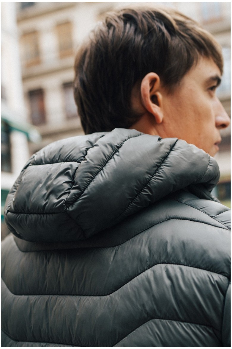 Chaqueta acolchada con capucha comfort fit de hombre confeccionada en poliamida 100%, que garantiza ligereza, resistencia y protección. De diseño liso en color verde, con manga larga y acabado acolchado, ofrece abrigo y comodidad, ideal para un estilo práctico y funcional.