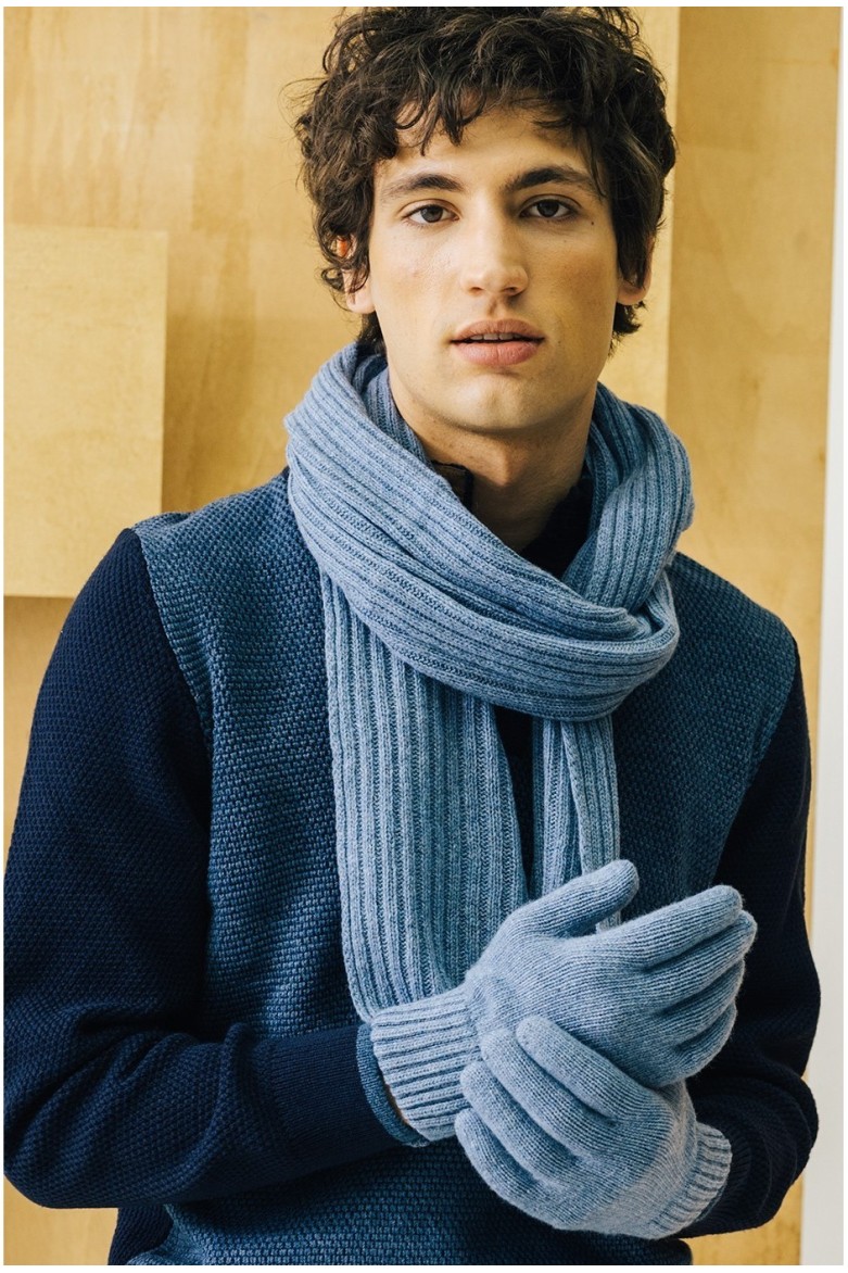 Guantes de punto con puño elástico color azul celeste. Talla única.