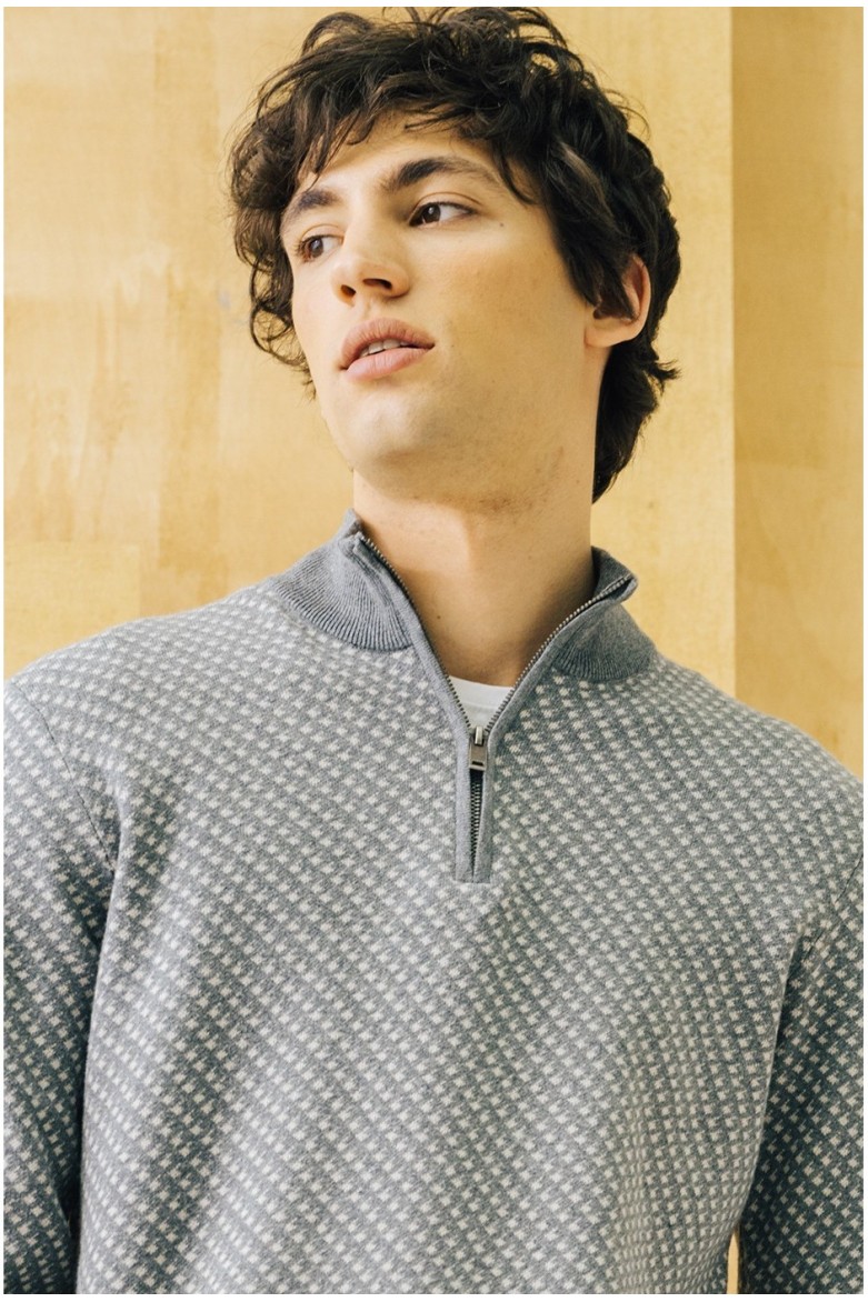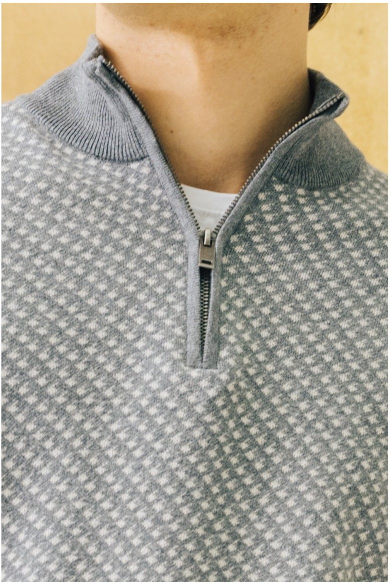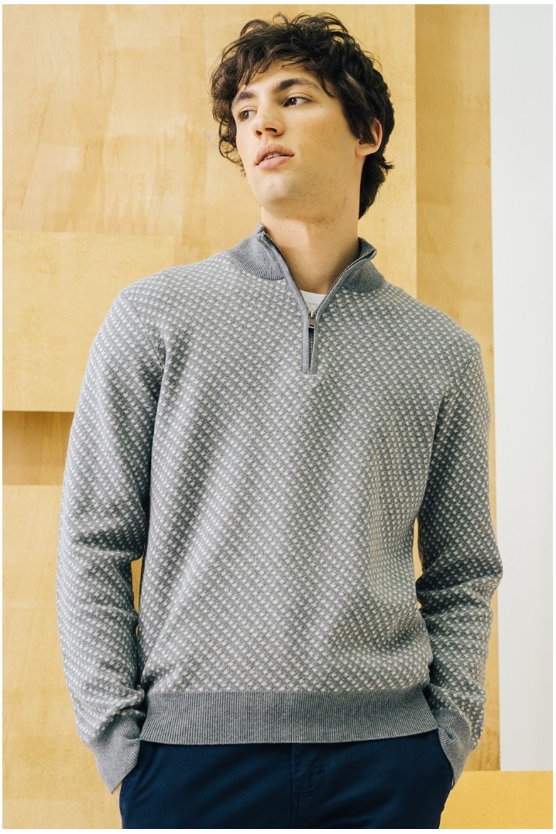 Jersey de punto con cadenas confeccionado en tejido 100% algodón. Cuello semicisne con cierre mediante cremallera. Acabados en rib.